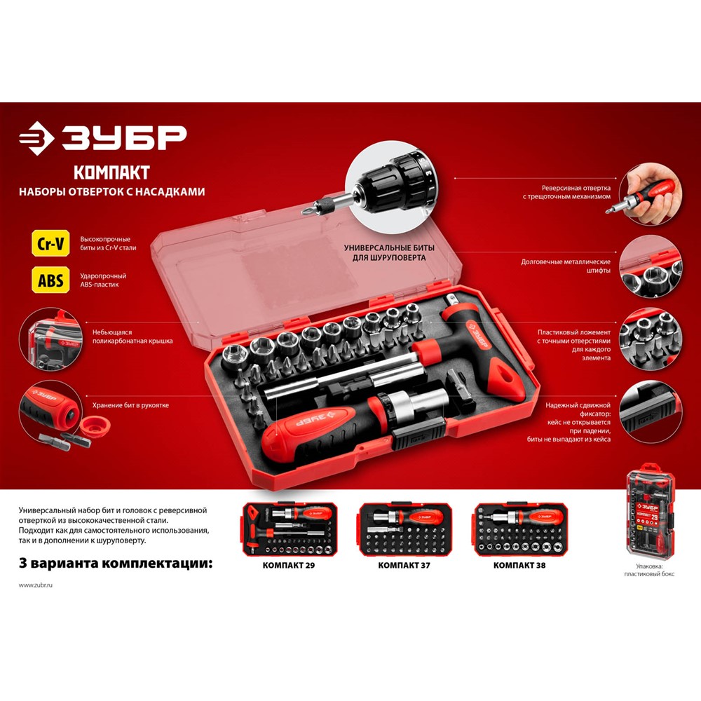 ЗУБР Компакт-38 набор: реверсивная отвертка с насадками 38 шт