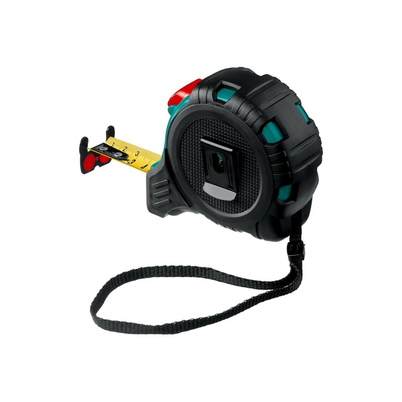 Рельефный корпус не скользит в руке, а эргономичная форма рулетки удобна для работы.