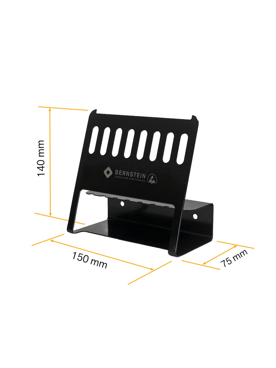 Практичный антистатический держатель инструмента VARIO изготовлен из прочной листовой стали толщиной 1.5 мм и имеет высококачественное диссипативное черное порошковое покрытие