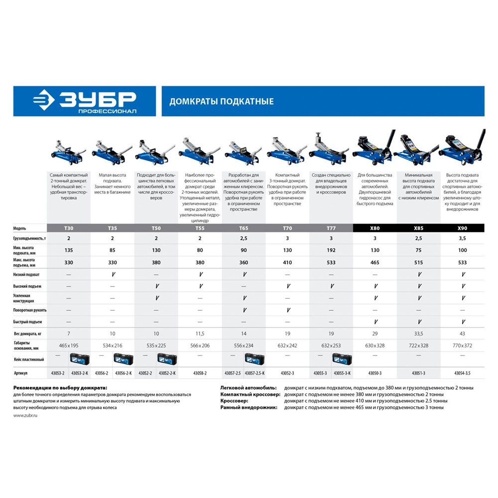 Домкрат гидравлический подкатной X85, 2,5т, 75-515мм, ЗУБР Профессионал 43051-3