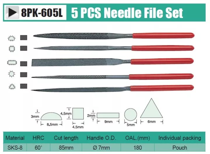 Набор надфилей 5 шт. ProsKit 8PK-605L отлично подходит для выглаживания и шлифования поверхностей, заточки инструментов..