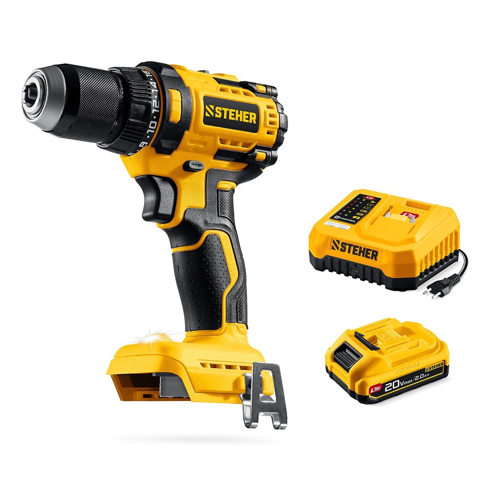 STEHER 20 В, 65 Н·м, 1 АКБ LMS (2 А·ч), бесщеточная дрель-шуруповерт (CB-65-21)
