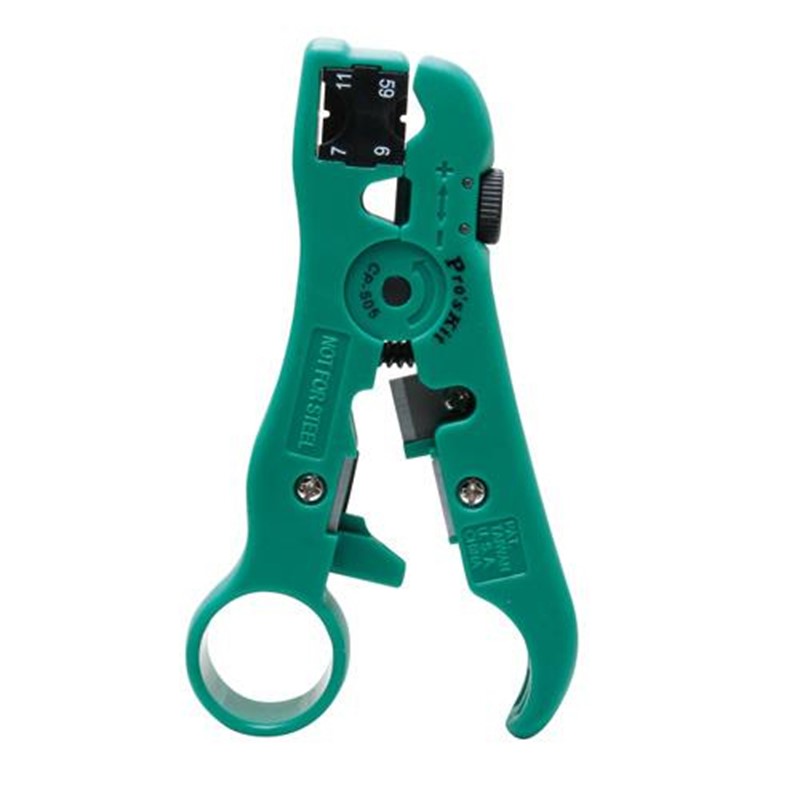 Инструмент для зачистки ProsKit CP-505 обладает удобной формой с кольцом для пальца - это уменьшает вероятность соскальзывания ладони.