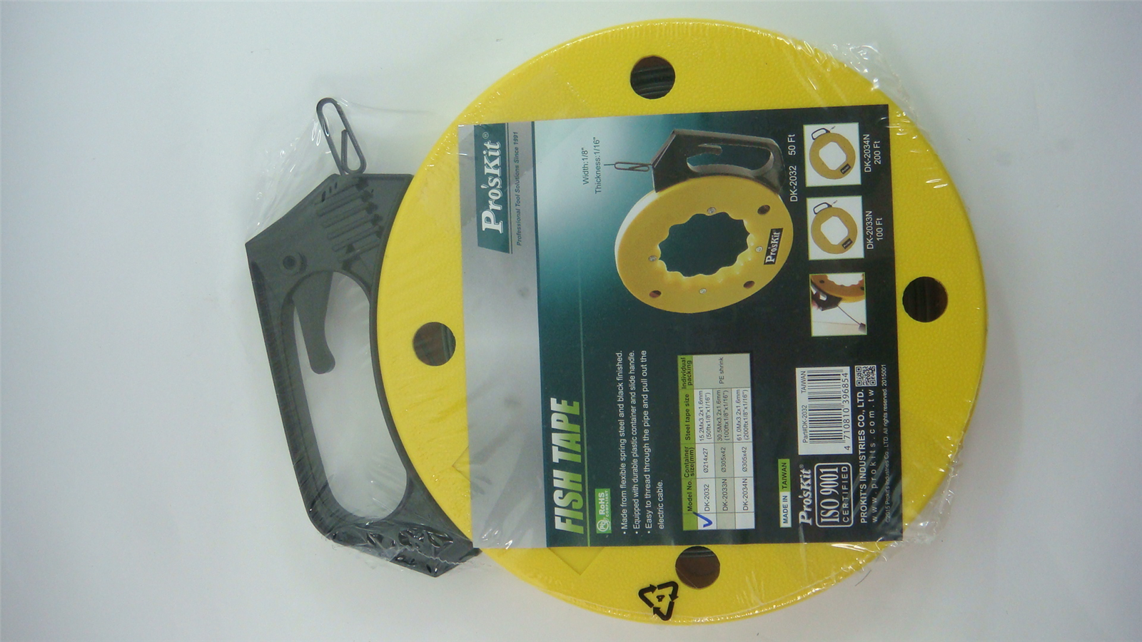 Катушка выполнена из гибкой пружинной стали и имеет прочный пластиковый корпус с боковой ручкой.