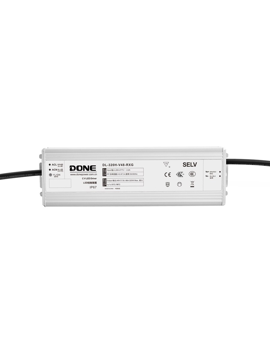Водонепроницаемый источник питания постоянного напряжения серии RXG-H со степенью защиты IP67 работает в диапазоне входного напряжения 176–305 В переменного тока. Он подходит для использования в относительно суровых условиях, таких как наружное ландшафтное и архитектурное освещение.