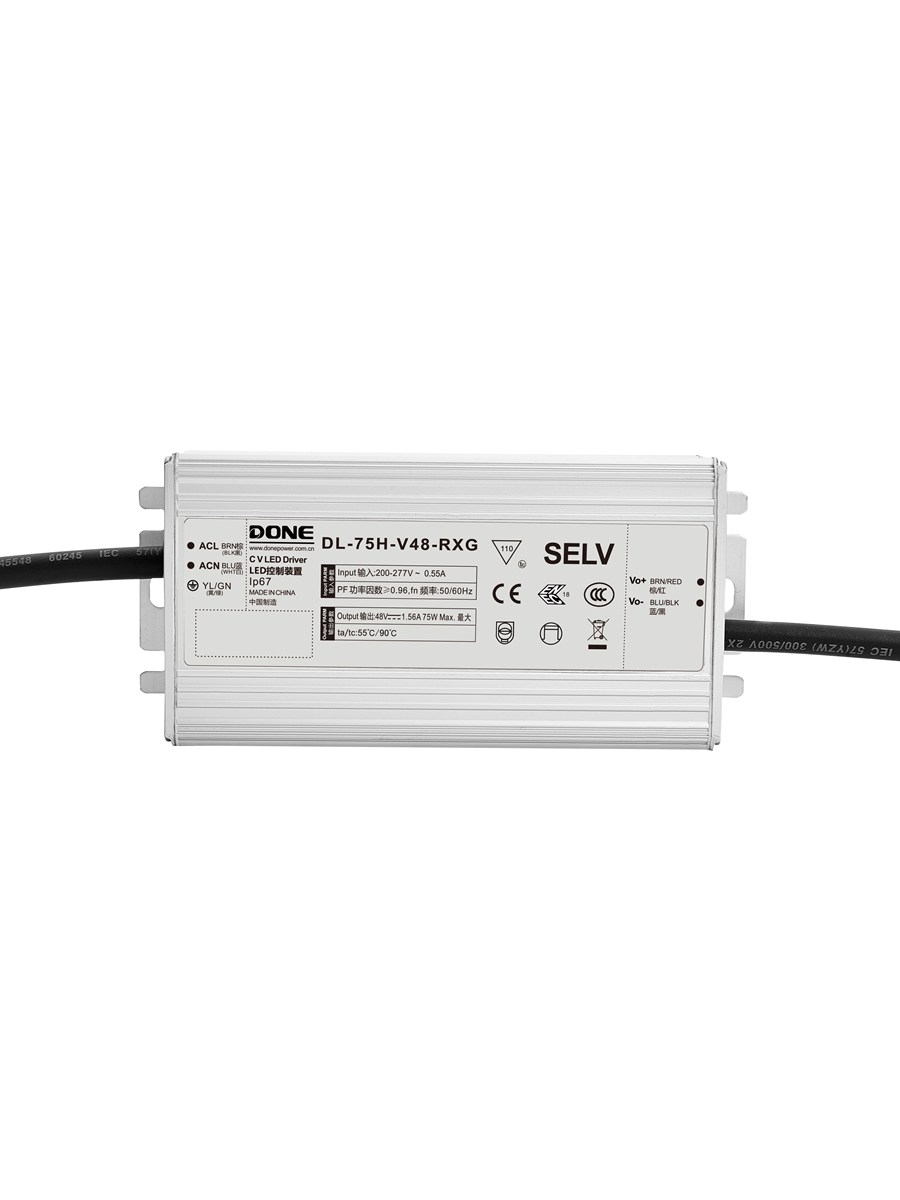 Водонепроницаемый источник питания постоянного напряжения серии RXG-H со степенью защиты IP67 работает в диапазоне входного напряжения 176–305 В переменного тока. Он подходит для использования в относительно суровых условиях, таких как наружное ландшафтное и архитектурное освещение.