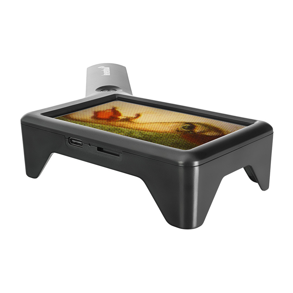Лупа делает фото и записывает видео на карту microSD (можно использовать карты объемом до 128 ГБ), при необходимости данные можно передать на ПК с помощью кабеля USB Type-C. Для удобной систематизации материалов предусмотрена функция установки даты.