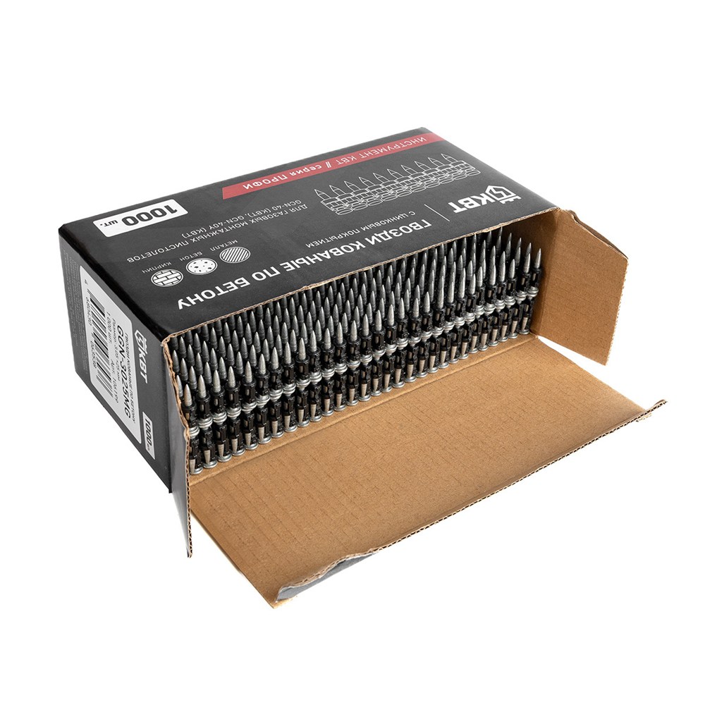 | Краткая характеристика | - Кованое острие гвоздя в форме пули обеспечивает легкое вхождение в поверхности высокой твердости: двутавровые стальные балки, металлические швеллеры, используемые в конструкциях зданий, а также бетон высокой прочности, используемый при возведении монолитных плит, колонн, перекрытий и фундаментов зданий; - Диаметр тела гвоздя: 3.05 мм; - Длина гвоздя GGN-3025MG: 25 мм; - Материал гвоздей: сталь; - Покрытие: цинковое; - Совместимы с газовыми монтажными пистолетами GCN-40 (КВТ), GCN-40Y (КВТ), а так же с газовыми и аккумуляторными пистолетами других брендов |