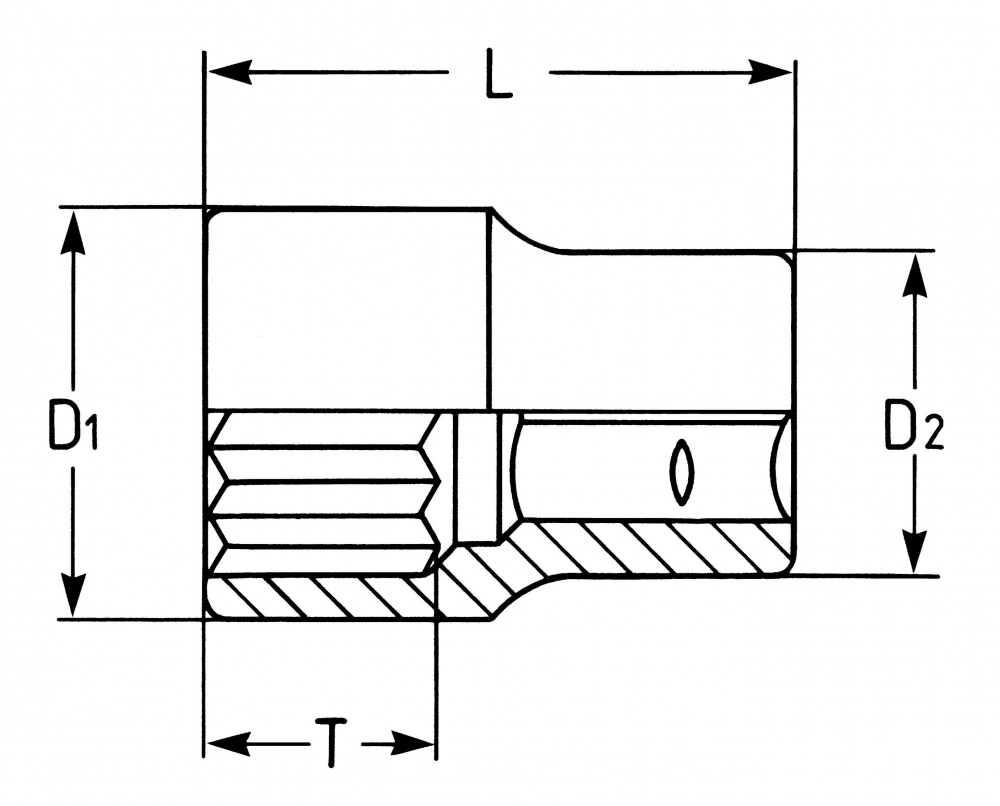Хром-ванадиевая торцевая головка с канавкой под шарик. Хромированная, полностью полированная.