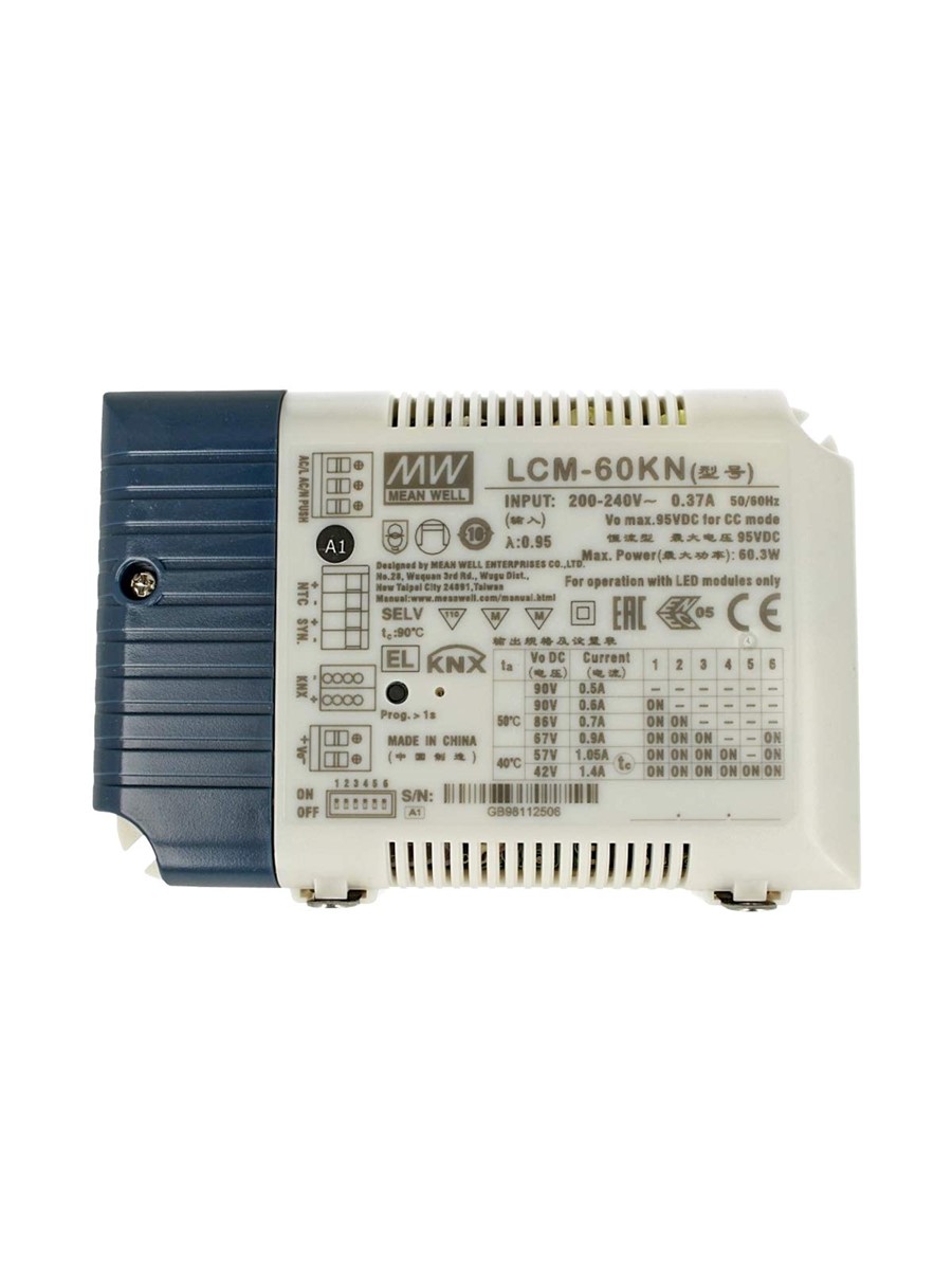 Светодиодные драйверы для светодиодного освещения с возможностью управления по шине KNX. Драйверы работают в режиме стабилизации тока, величину которого можно выбрать из 6 номинальных значений с помощью DIP-переключателя.
