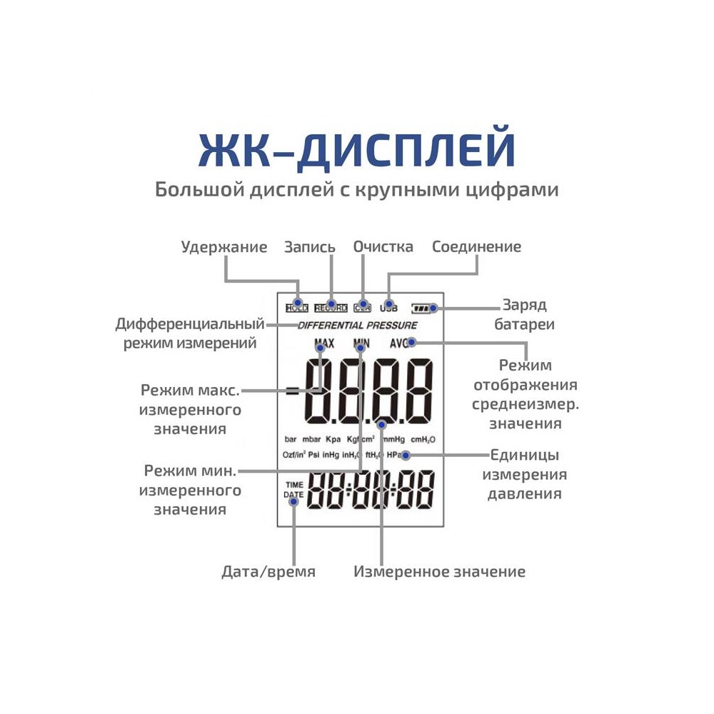 Прибор серии МЕГЕОН 5100Х - это цифровой дифференциальный манометр, предназначенный для измерения избыточного, пониженного и дифференциального давлений. Фиксация максимального, минимального и среднего значений и функция удержания данных значительно облегчат выполнение измерений. Возможность подключения к компьютеру позволяет выгрузить данные на ПК и проводить измерения с регистрацией в режиме реального времени. Прибор позволяет измерять давление в разных единицах. Изделия МЕГЕОН выгодно отличаются от существующих аналогов широкими функциональными возможностями и могут применяться для измерения расхода газов, контроль загрязненности фильтров и измерения избыточного давления в чистых помещения. Приведенный перечень далеко неполный. Функциональность по достоинству оценят как начинающие пользователи, так и профессионалы.