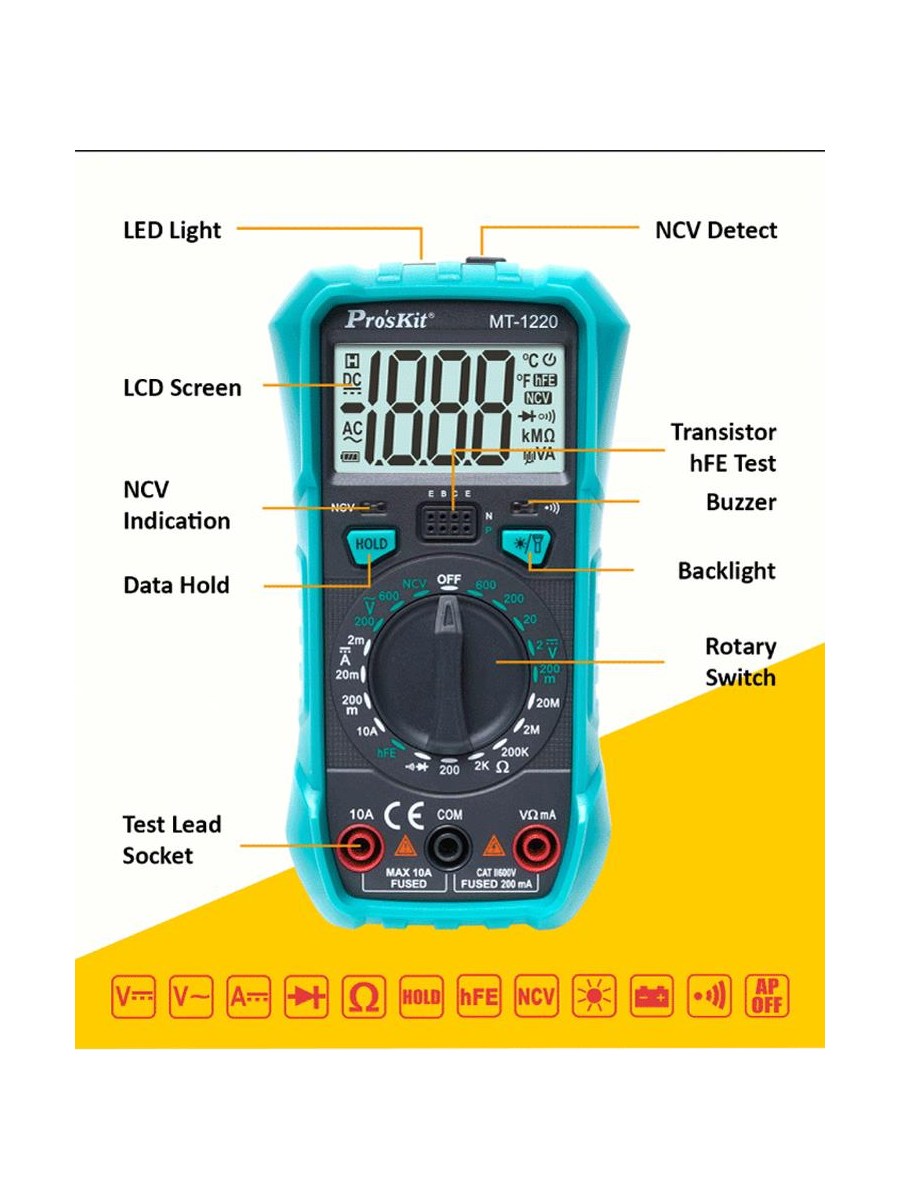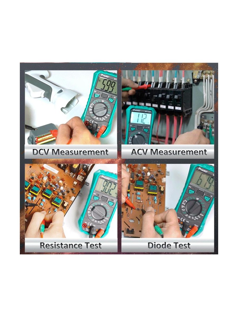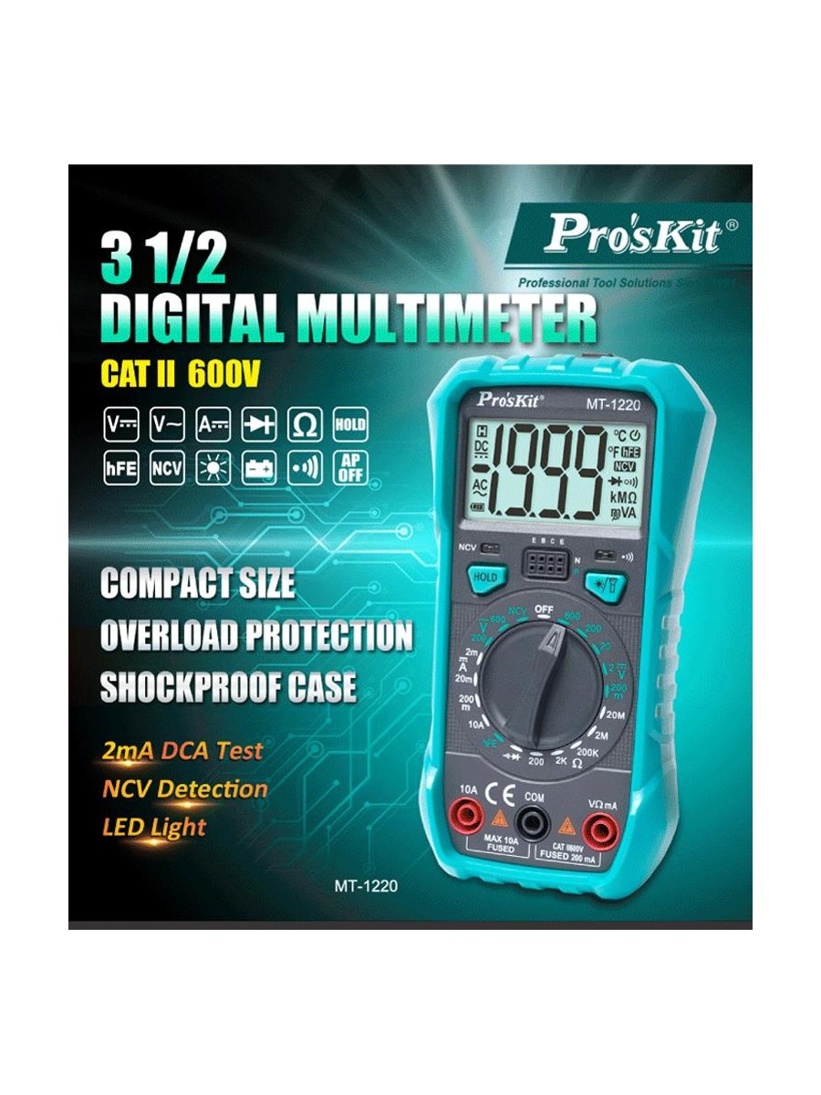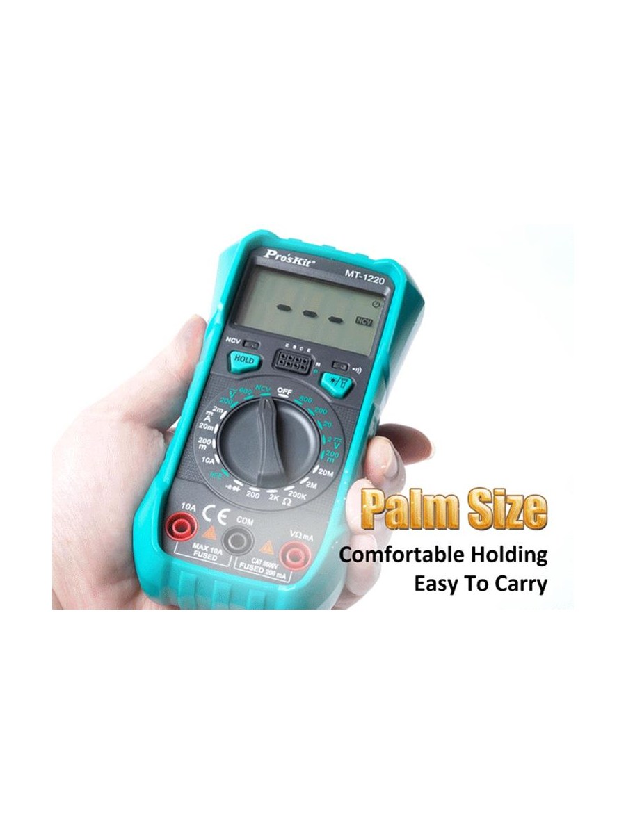 MT-1220 — универсальный цифровой мультиметр: подходит для всех видов бытового использования и обслуживания электроники. Он может быстро и точно устранять неполадки в электрических цепях.