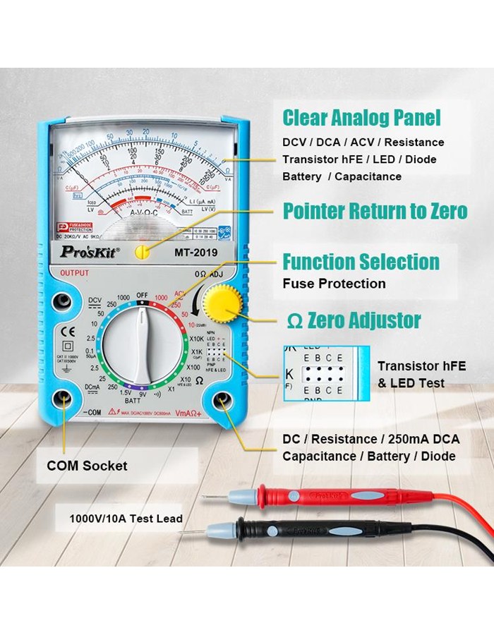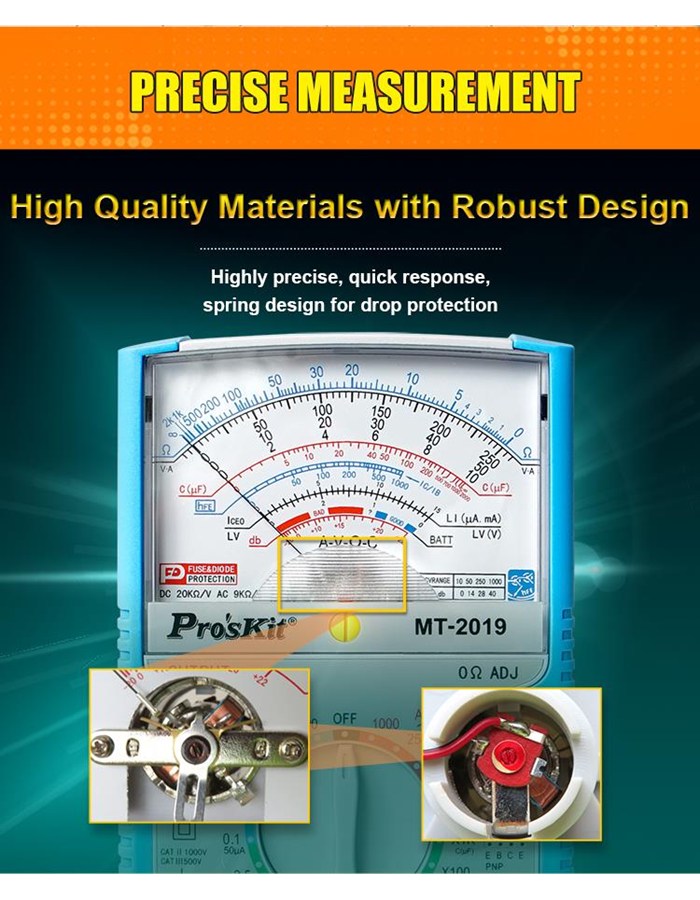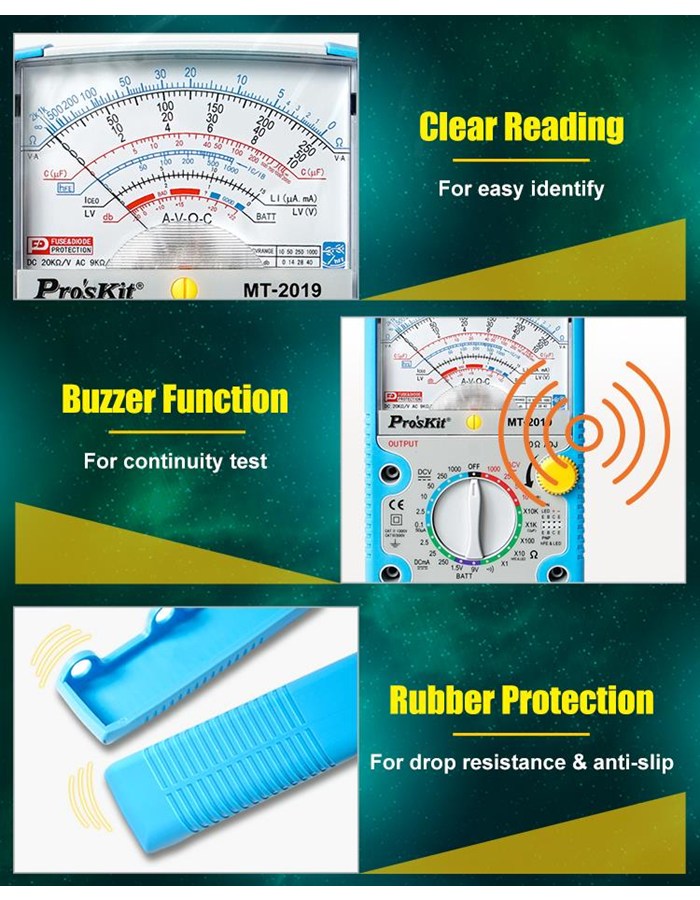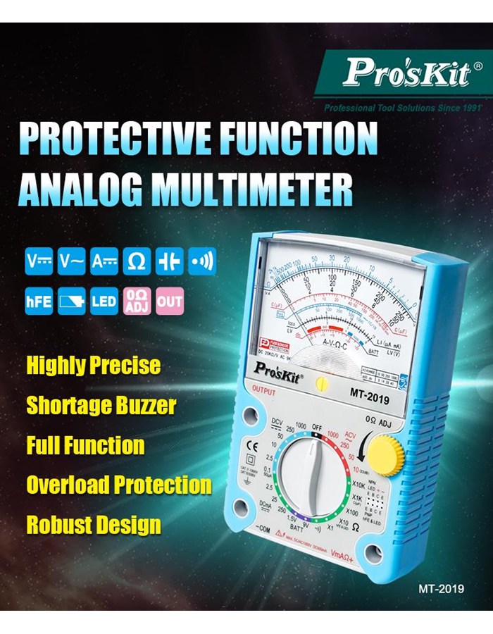 MT-2019 Pro'sKit Мультиметр аналоговый, защитный