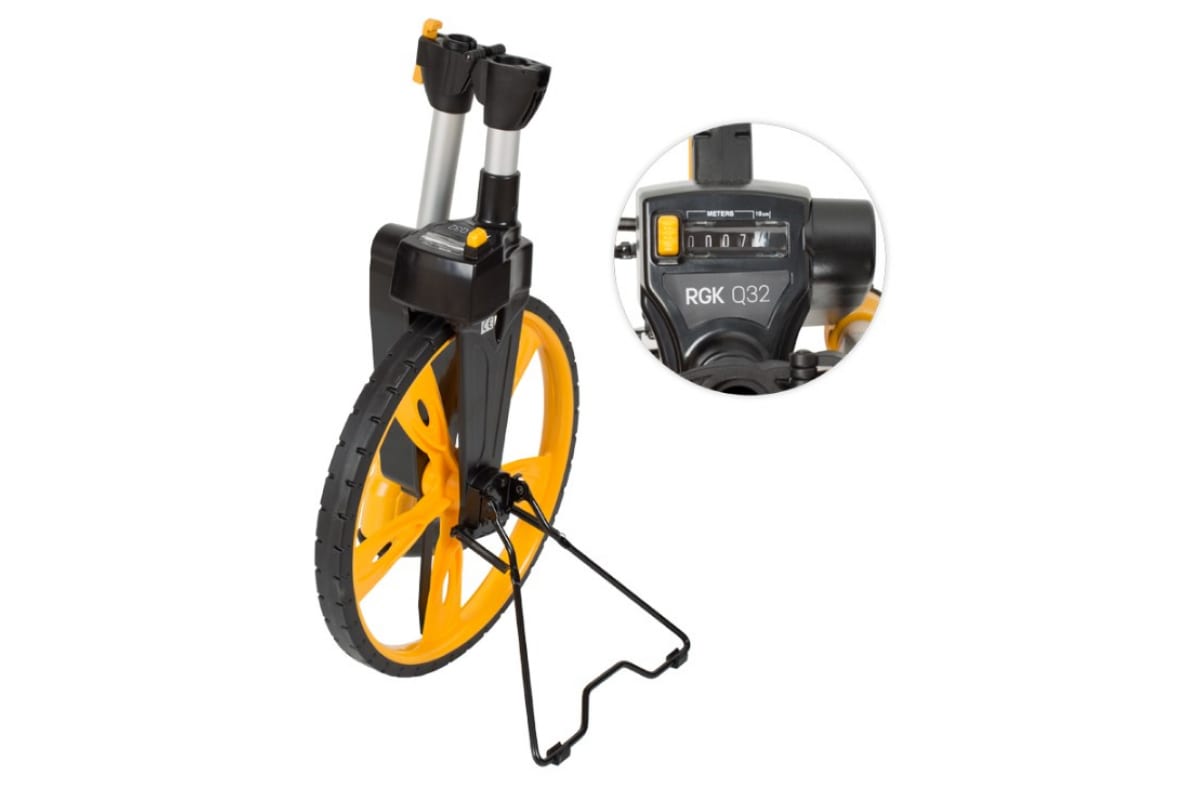 Дорожное колесо RGK Q32 диаметром 320 мм предназначено для измерения расстояний на всех видах поверхностей с точностью 10 сантиметров. Благодаря механическому счетчику, прибор сохраняет точность в условиях высокой влажности и запыленности.
