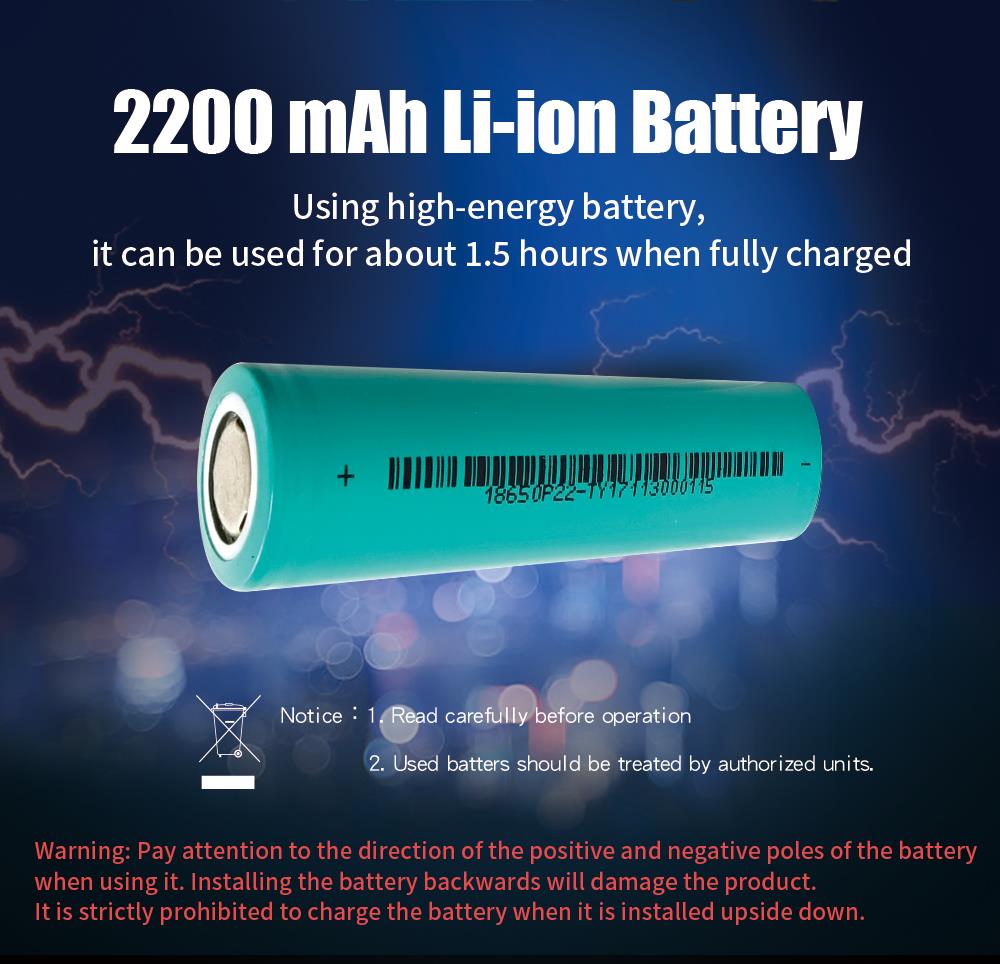 - Аккумулятор на 2200 mAh Li-ion (время работы ~ 45 мин., зарядка ~ 3 часа)