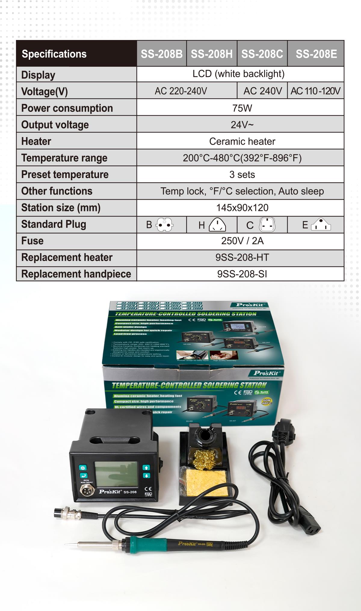Цифровая паяльная станция 75 Вт/220 В Pro'sKit SS-208B