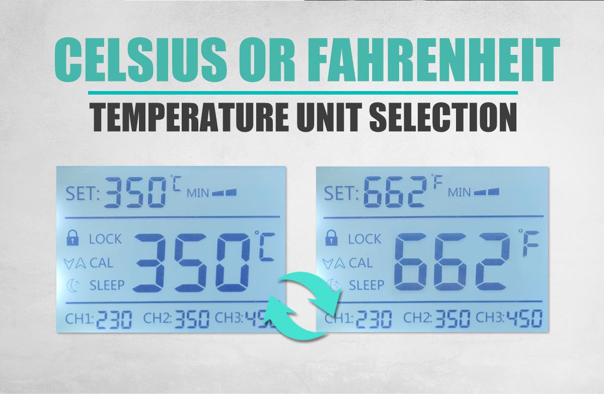 Выбор единиц измерения температуры: Цельсий или Фаренгейт.