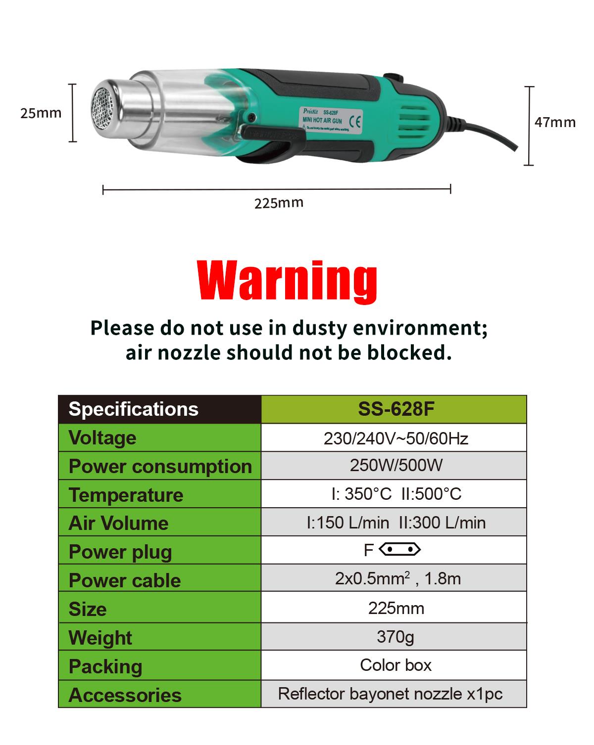 Термофен мини 250/500 Вт Pro'sKit SS-628F