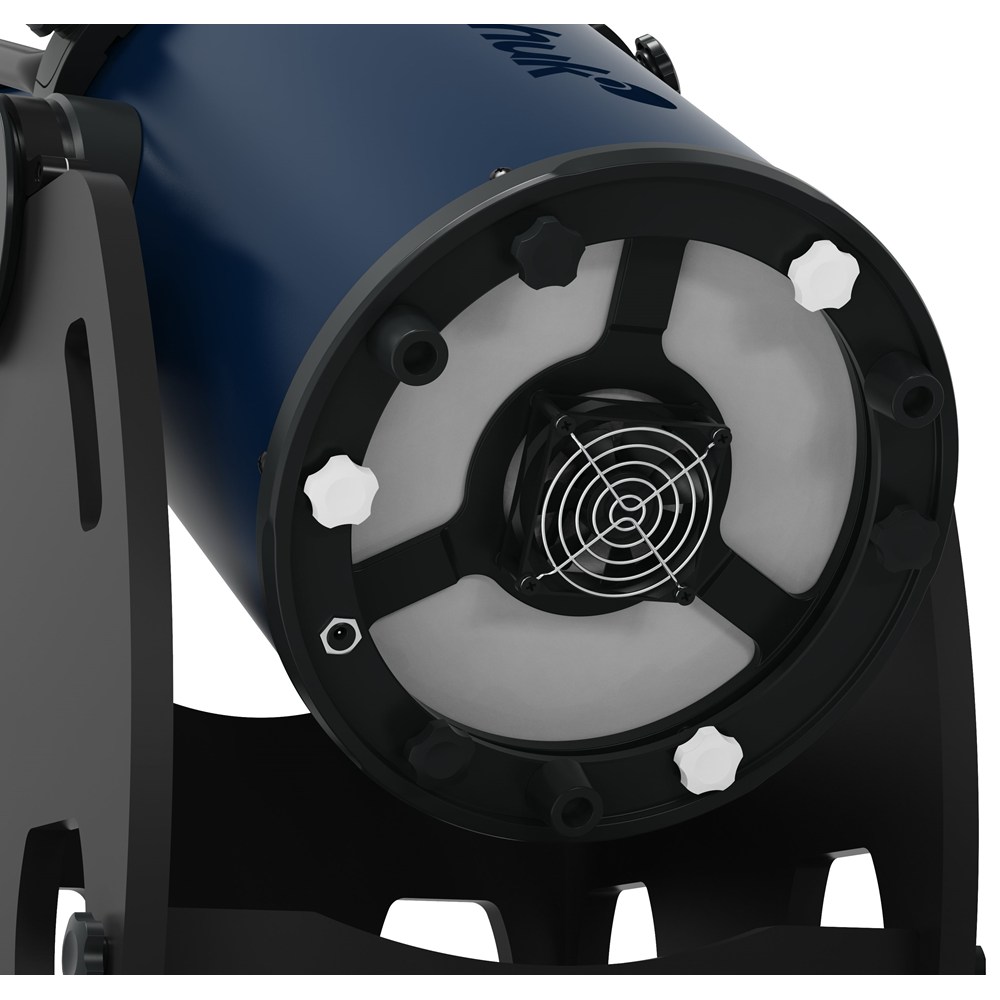 Управление телескопом интуитивно понятно, его быстро освоит даже начинающий астроном. ОТА установлена на устойчивую и простую в использовании монтировку Добсона, изготовленную из качественно обработанного дерева. Для точной настройки резкости видимого изображения служит 2-скоростной реечный фокусер 2" с адаптером на посадочный диаметр 1,25". Максимальное полезное увеличение системы достигает 500 крат. В комплект поставки входят окуляры Plössl 10 и 25 мм (1,25"), которые обеспечивают увеличение 127х и 51х соответственно. Помимо них, набор включает и другие полезные аксессуары: оптический искатель 8х40 для удобного наведения на объекты, вентилятор для активного охлаждения главного зеркала (работает от 8 батареек типа АА, приобретаются отдельно) и защитный чехол для оптической трубы.