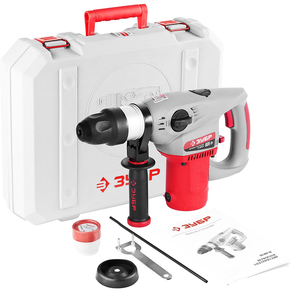 Перфоратор ЗУБР ЗП-805ЭК, предназначен для бурения отверстий и долбления в бетоне, а также может использоваться для сверления отверстий в металле и дереве. Перфоратор увеличенной мощности с небольшим весом, идеально подходит для трудных и продолжительных работ. Вертикальная компоновка ударного механизма обеспечивает бОльшую силу удара, чем изделие той же мощности в горизонтальной компоновке. Три режима работы - сверление, сверление с ударом и удар - делают изделие универсальным инструментом широкого применения. Корпус редуктора из металла позволяет получить от изделия максимум без ущерба для надежности. Увеличенные диаметр и скорость бурения для максимальной производительности. Функции долбления и сверления без удара придают дополнительную функциональность. Патрон SDS Plus для быстрой смены расходного инструмента. Предохранительная муфта для защиты оператора при блокировании бура. Быстрый доступ к щеткам для удобства замены.
